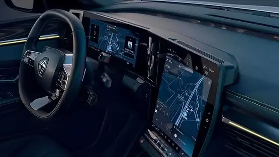 Prenez place dans un univers high-tech et raffiné à bord de la Megane E-Tech Electrique. L'écran OpenR Link de 12,3 pouces et le tableau de bord numérique de 9,3 pouces offrent une expérience digitale intuitive et immersive.
